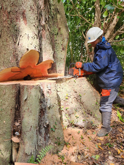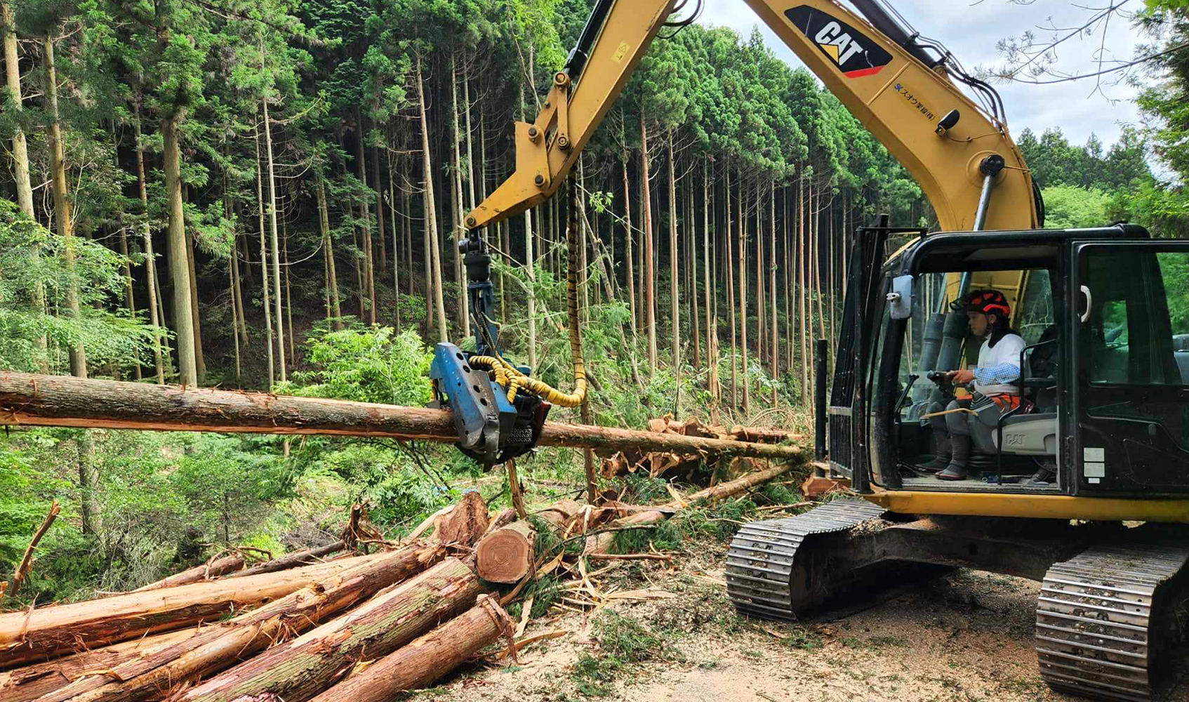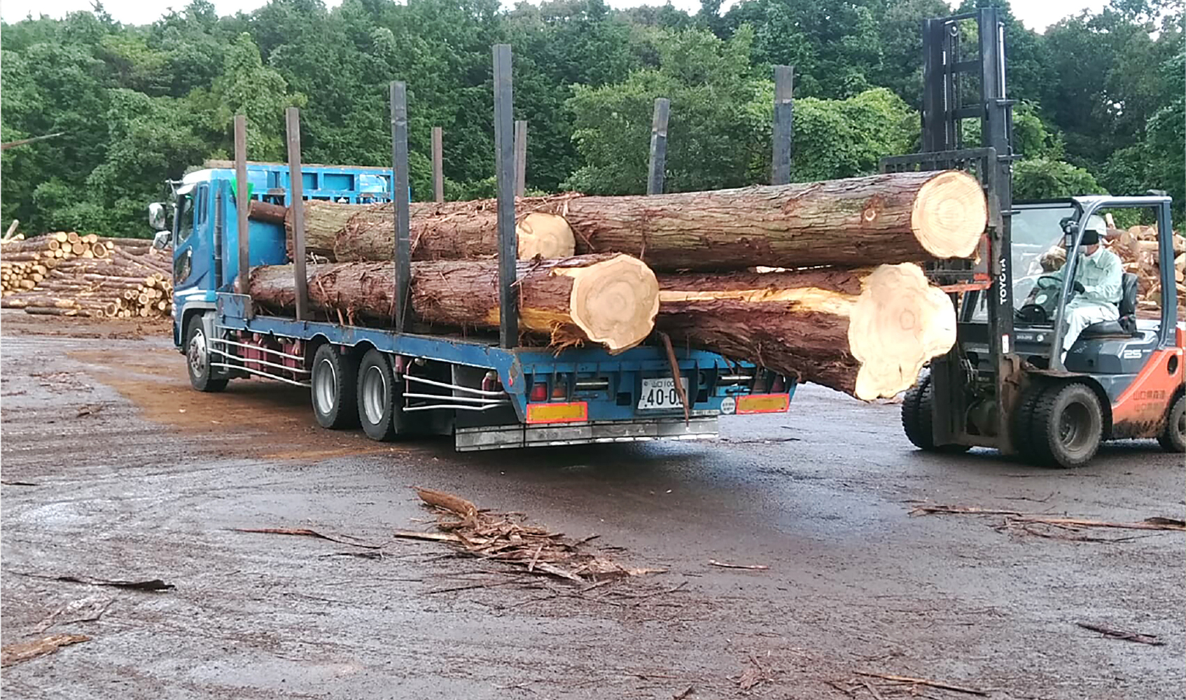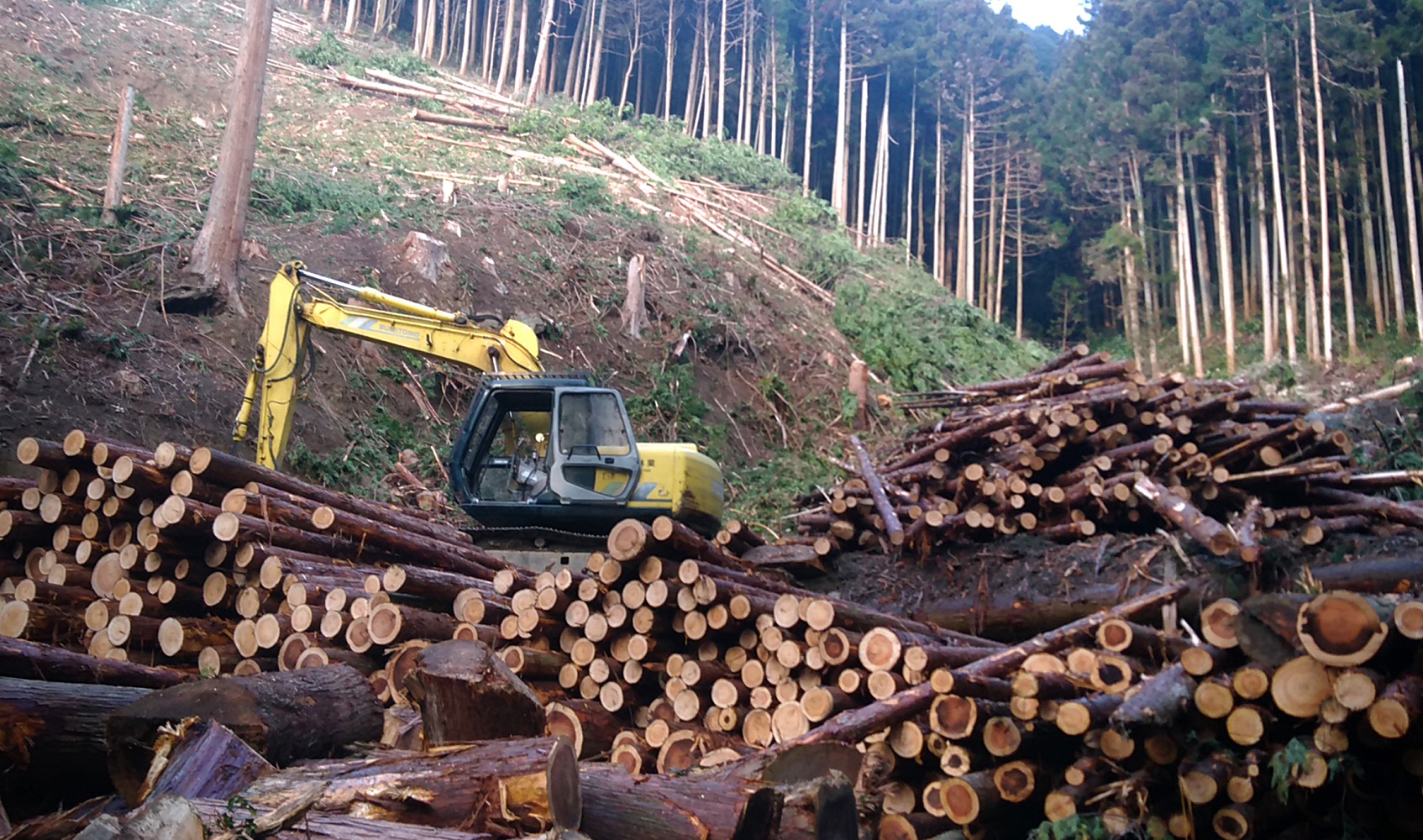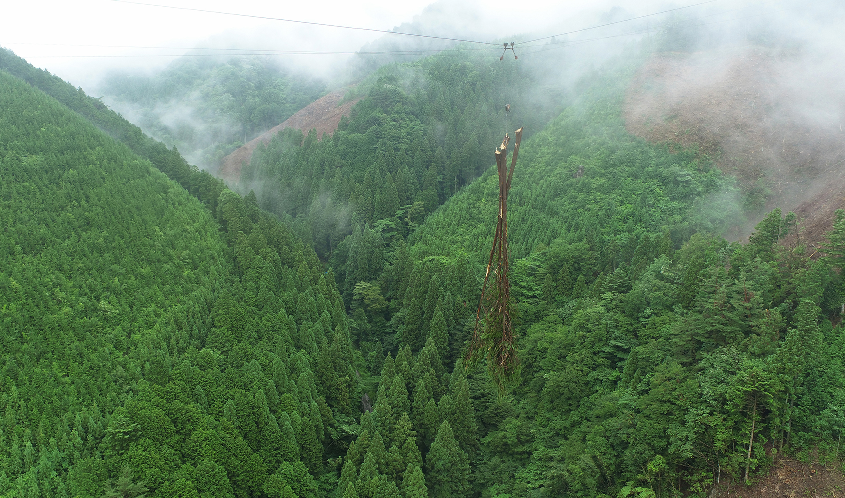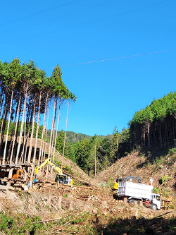 また集材後は山から架線を撤去して元の状態に戻します。地表をできるだけ荒らさずに集材できるため山へのダメージが少ないのが特長です。