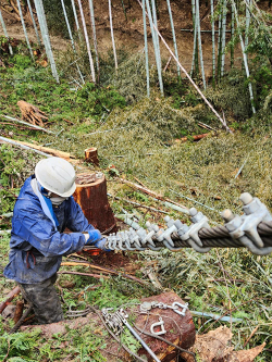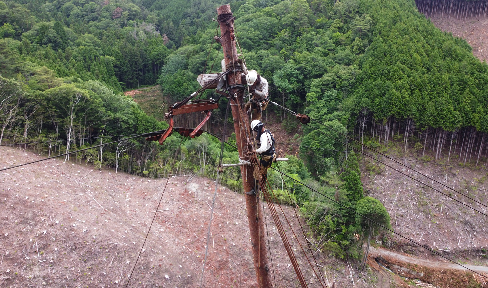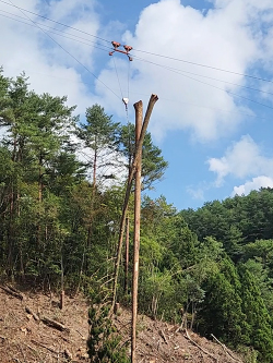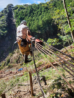 林業架線とは、林業において伐採した木材を山から運び出すための技術です。